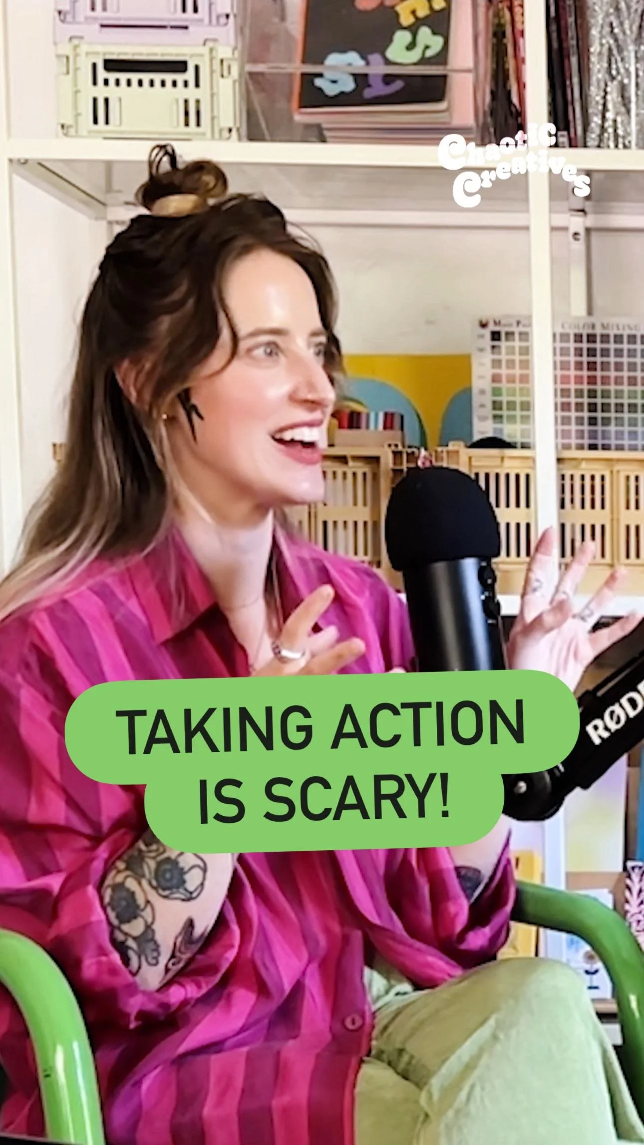 When I’m not facilitating creative workshops, talking on the Chaotic Creatives podcast, or in the studio making a papier-mâché project, I’m likely working on a quilt, gabbing with my pals over coffee, or binge-reading a fantasy romance book while cuddling my cats.