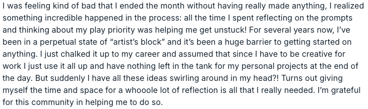 A seasonal structure to build a dedicated practice. Goal-setting + reflection exercises to check in with myself. Live calls to hold myself accountable to others in the community.